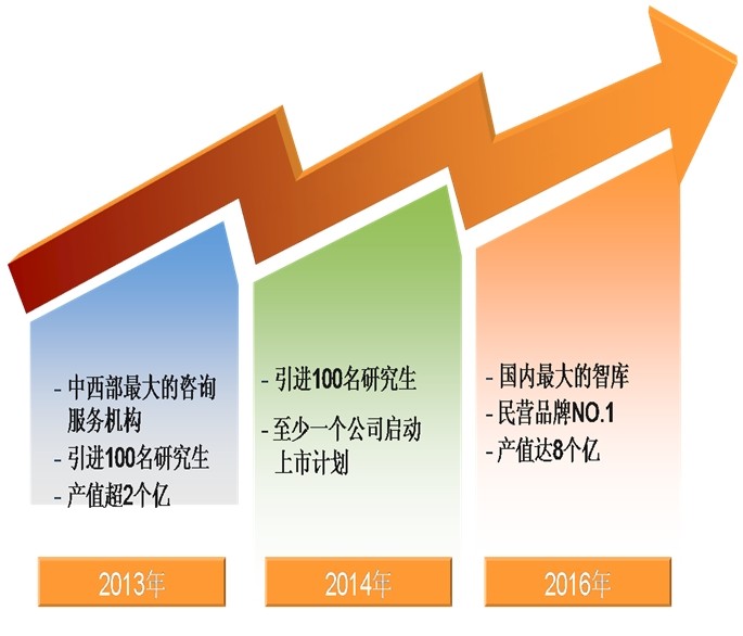 本公司是以人才為依托,以市場(chǎng)為導(dǎo)向,致力于打造中國(guó)第一流的技術(shù)咨詢(xún)團(tuán)隊(duì)。目前已形成員工500余人、產(chǎn)值近2億元、服務(wù)資質(zhì)18個(gè)、業(yè)務(wù)范圍11個(gè)省的初步規(guī)模,但技術(shù)力量還比較薄弱,服務(wù)范圍還不理想,公司的影響力比較有限。在公司擬在成立十周年之際,緊抓十八屆三中全會(huì)所帶來(lái)的歷史機(jī)遇,苦練內(nèi)功,改革創(chuàng)新,挖掘潛力,用3-5年時(shí)間,使公司員工達(dá)到1500人、產(chǎn)值達(dá)到8-10億元、努力成為中國(guó)最有影響的技術(shù)咨詢(xún)單位之一。5-10年以后,眾望咨詢(xún)業(yè)務(wù)將覆蓋全國(guó)并走向世界,打造1-2個(gè)上市公司,業(yè)務(wù)范疇將向技術(shù)研究、創(chuàng)造發(fā)明、企業(yè)設(shè)計(jì)、戰(zhàn)略開(kāi)發(fā)、組織結(jié)構(gòu)、經(jīng)營(yíng)運(yùn)作等方面拓展,成為中國(guó)的“麥肯錫”……